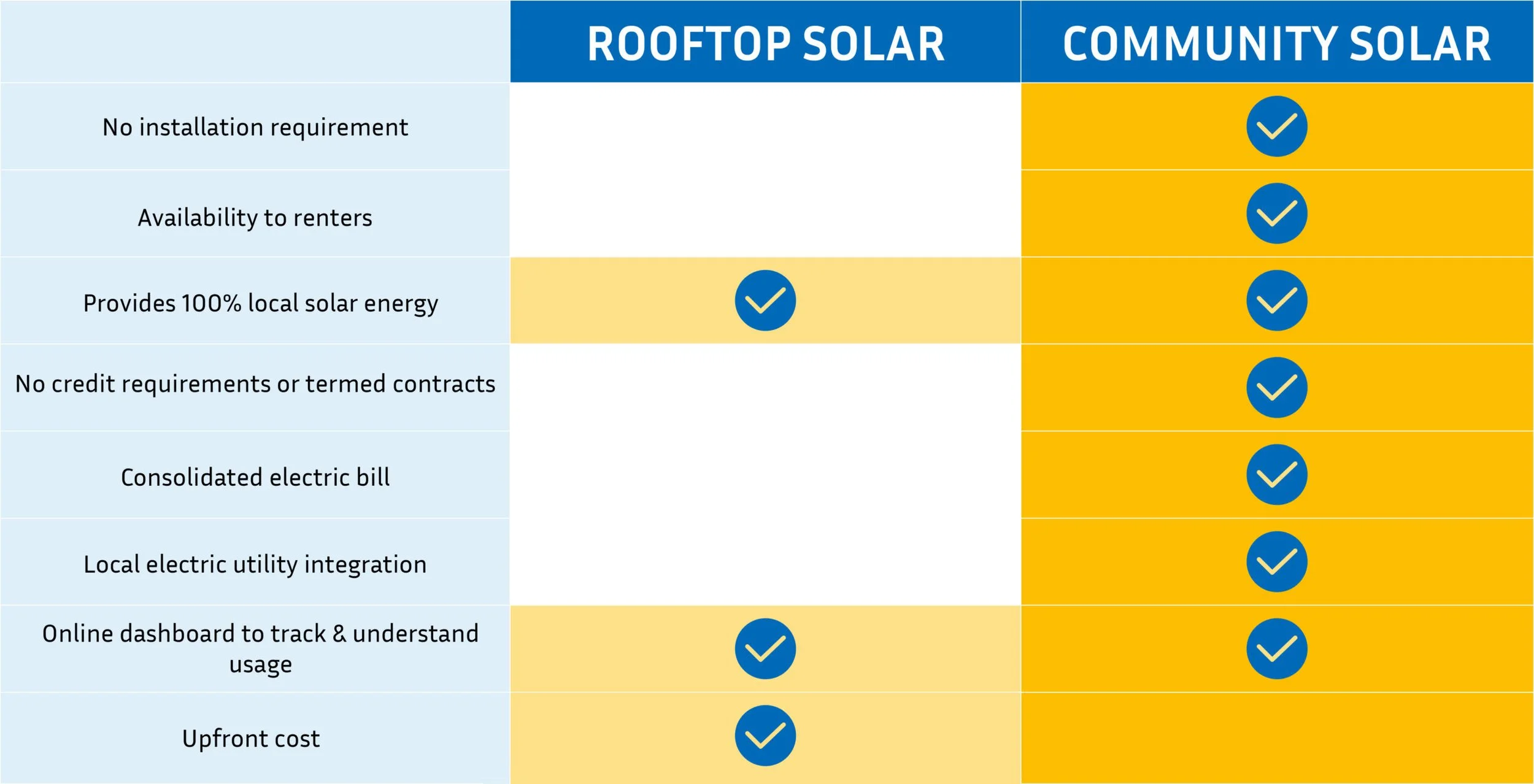 Community solar projects, as defined by the U.S. Department of Energy, benefits multiple customers in a geographic area. You subscribe to or own a share of off-site solar energy and receive bill credits. It’s an ideal option if you can’t install solar panels due to renting, cost, or unsuitable roofs.